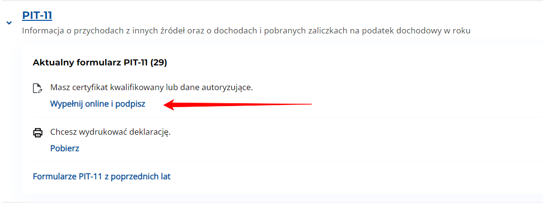 Począwszy od deklaracji za rok 2023 należy posłużyć się aplikacją webową na stronie podatki.gov.pl, która została udostępniona dla różnych deklaracji CIT, PIT lub VAT po wybraniu "Wypełnij online i podpisz".