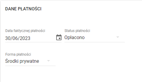 b) W momencie wprowadzania dokumentacji kosztowej w formie płatności należy oznaczać formę płatności "Środki prywatne".
