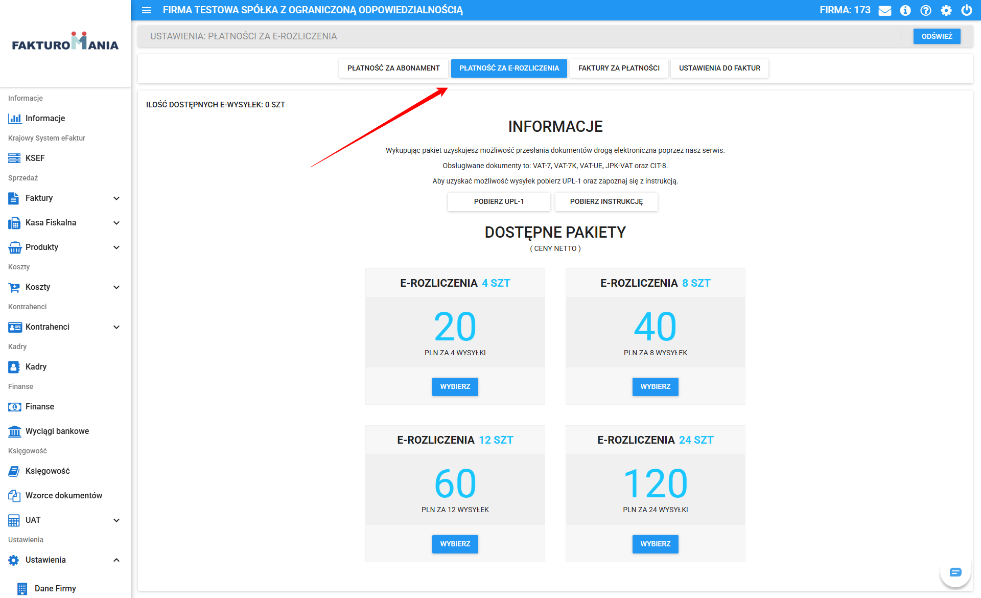 2. 40 zł netto za pakiet E-ROZLICZENIA 8 SZT