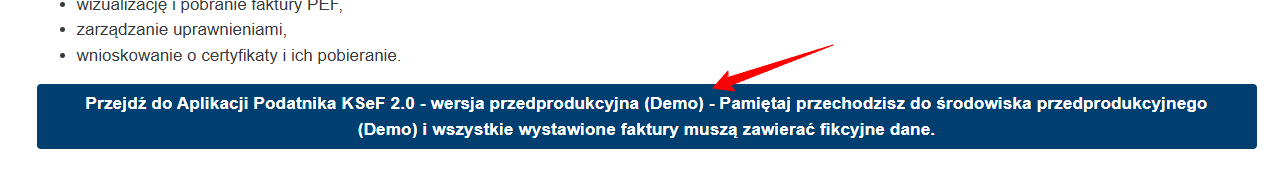 b) Wersja przedprodukcyjna (Demo) - przeznaczona dla technicznego sprawdzenia funkcjonalności systemu KSeF przez API lub na danych prawidziwych (ale jednocześnie testowych), które nie odnoszą skutków prawnych. Środowisko przedprodukcyjne do stosowania w celu sprawdzenia funkcjonalności systemu KSeF zostało udostępnione 15 listopada 2025r. Instrukcja logowania oraz konfiguracji konta do tej wersji znajduje się właśnie w niniejszym materiale.