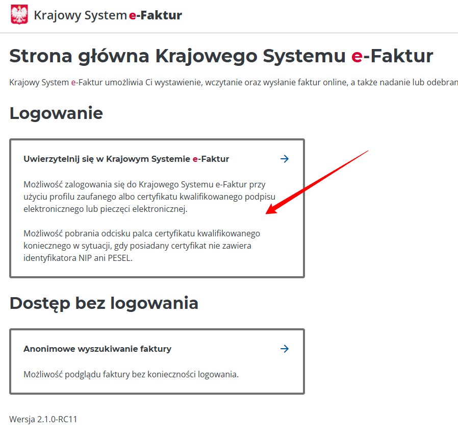 II. Logowanie w Krajowym systemie e-Faktur w wersji przedprodukcyjnej Aplikacji Podatnika KSeF 2.0