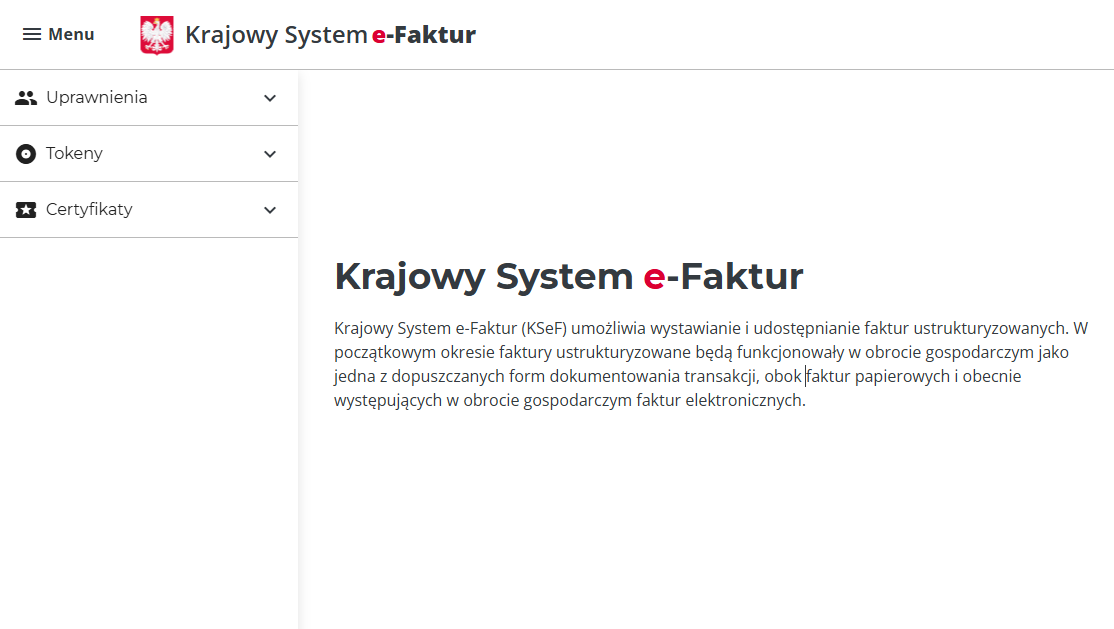Pierwszy interfejs Krajowego Systemu eFaktur będzie praktycznie pusty, a zostanie on rozszerzony o inne funkcje dopiero po nadaniu tzw. Uprawnień. Logując się po raz pierwszy do KSeF niezależnie od tego czy jest to osoba prawna czy jednoosobowa działalność gospodarcza, występujemy technicznie jako "Administrator", który musi to konto KSeF skonfigurować.