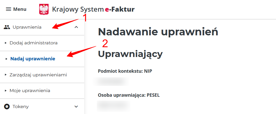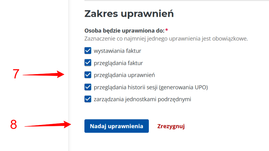 2) Nadanie uprawnień do wystawiania faktur w KSeF i obsługi systemu