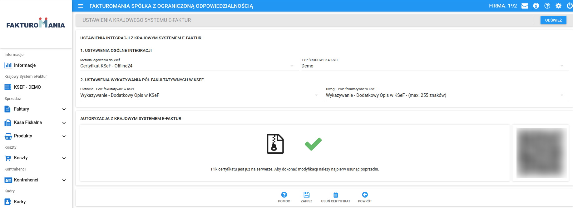 III. Konfiguracja Fakturomanii z Krajowym Systemem eFaktur