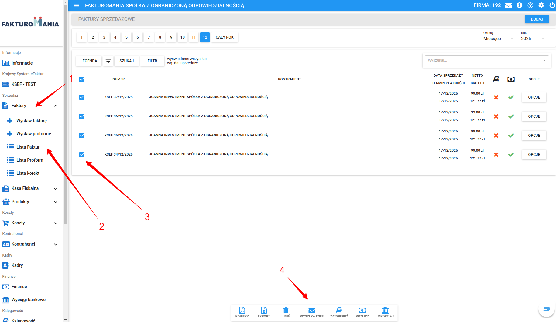 a) Dla faktur sprzedaży - automatycznej wysyłki lub pobrania listy faktur znajdujących się w KSeF,
