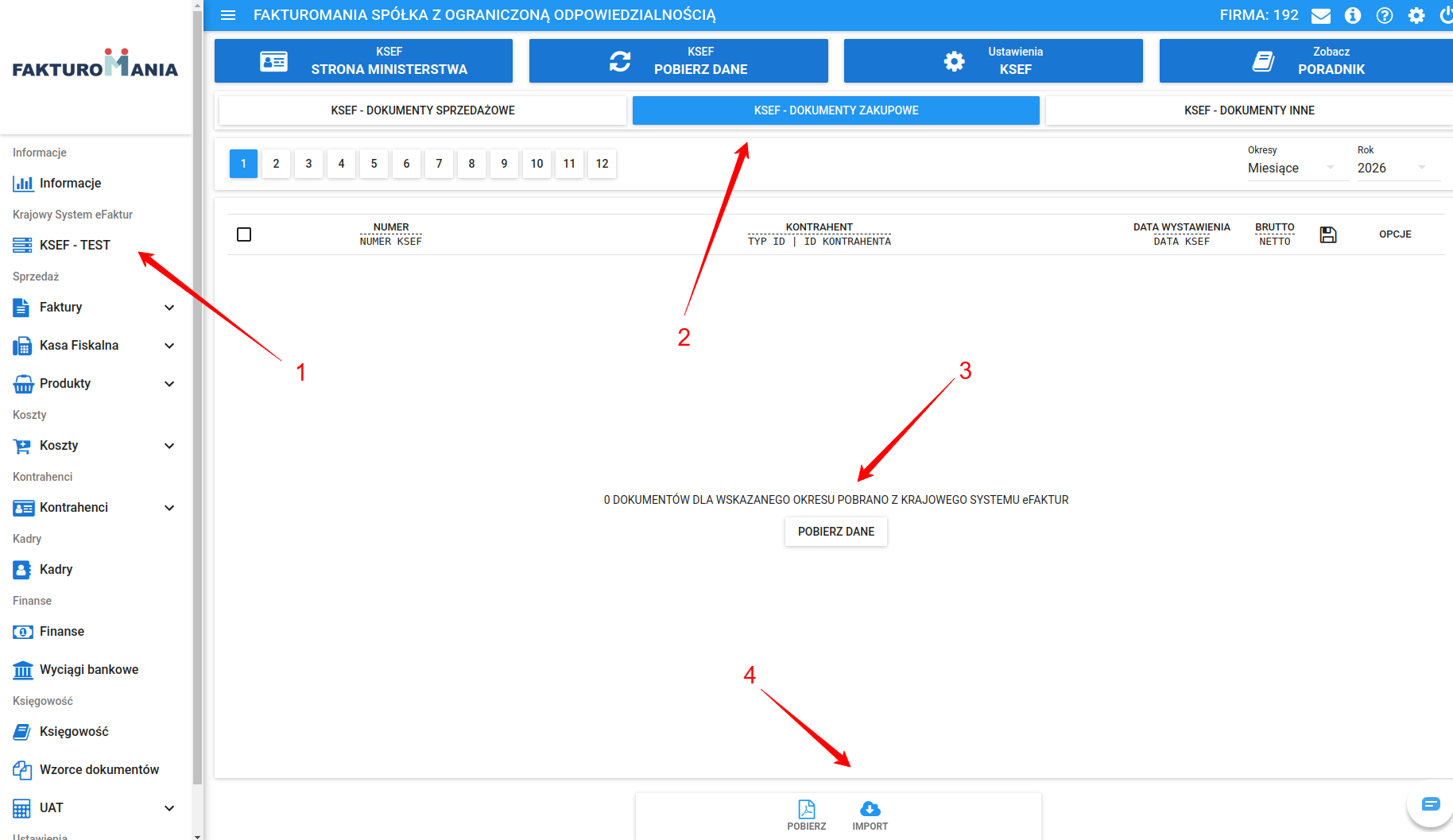 Szczegółowe instrukcje procesu przekazywania lub pobierania danych z KSeF zostały przedstawione w odrębnych materiałach.