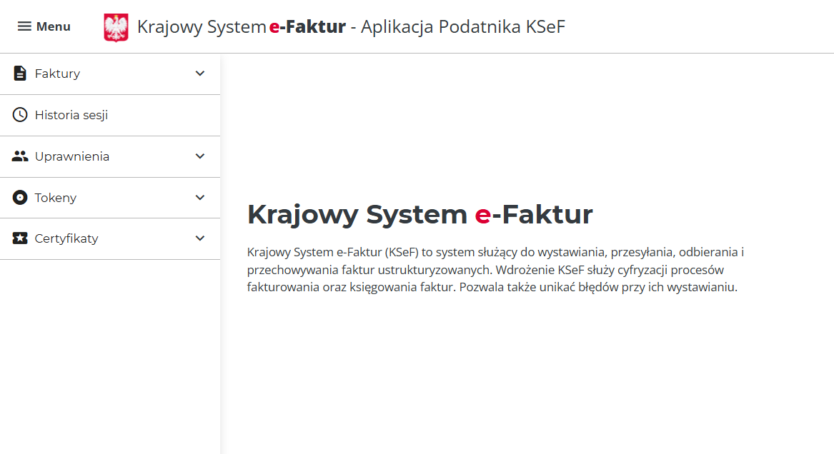 Po zalogowaniu w KSeF Interfejs Aplikacji Podatnika Krajowego Systemu eFaktur będzie posiadał zaledwie pięć zakładek, z czego w niniejszym materiale interesują nas dwie: