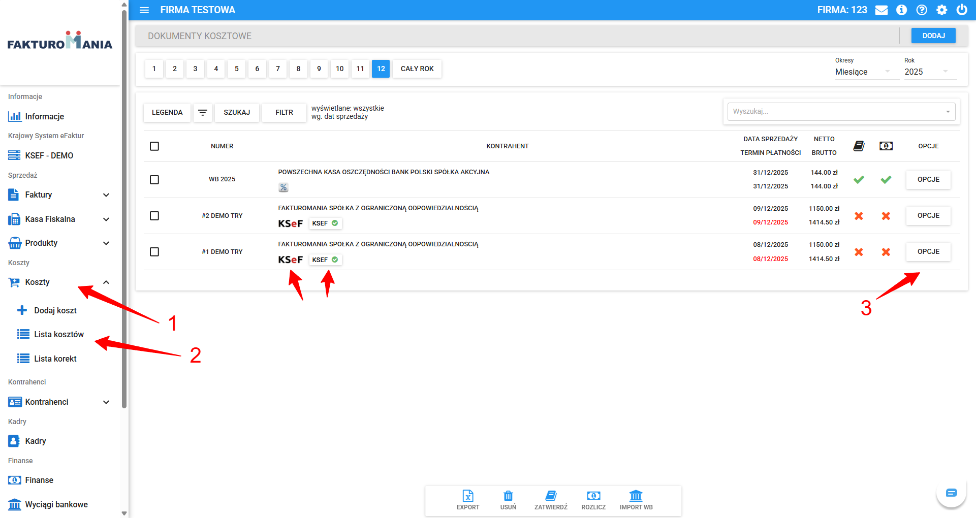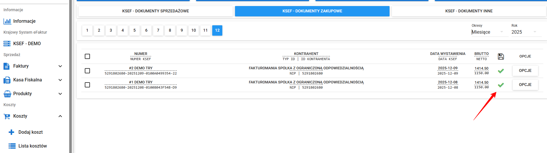 pełnej listy faktur kosztowych znajdujących się w KSeF dla wybranego okresu rozliczeniowego.