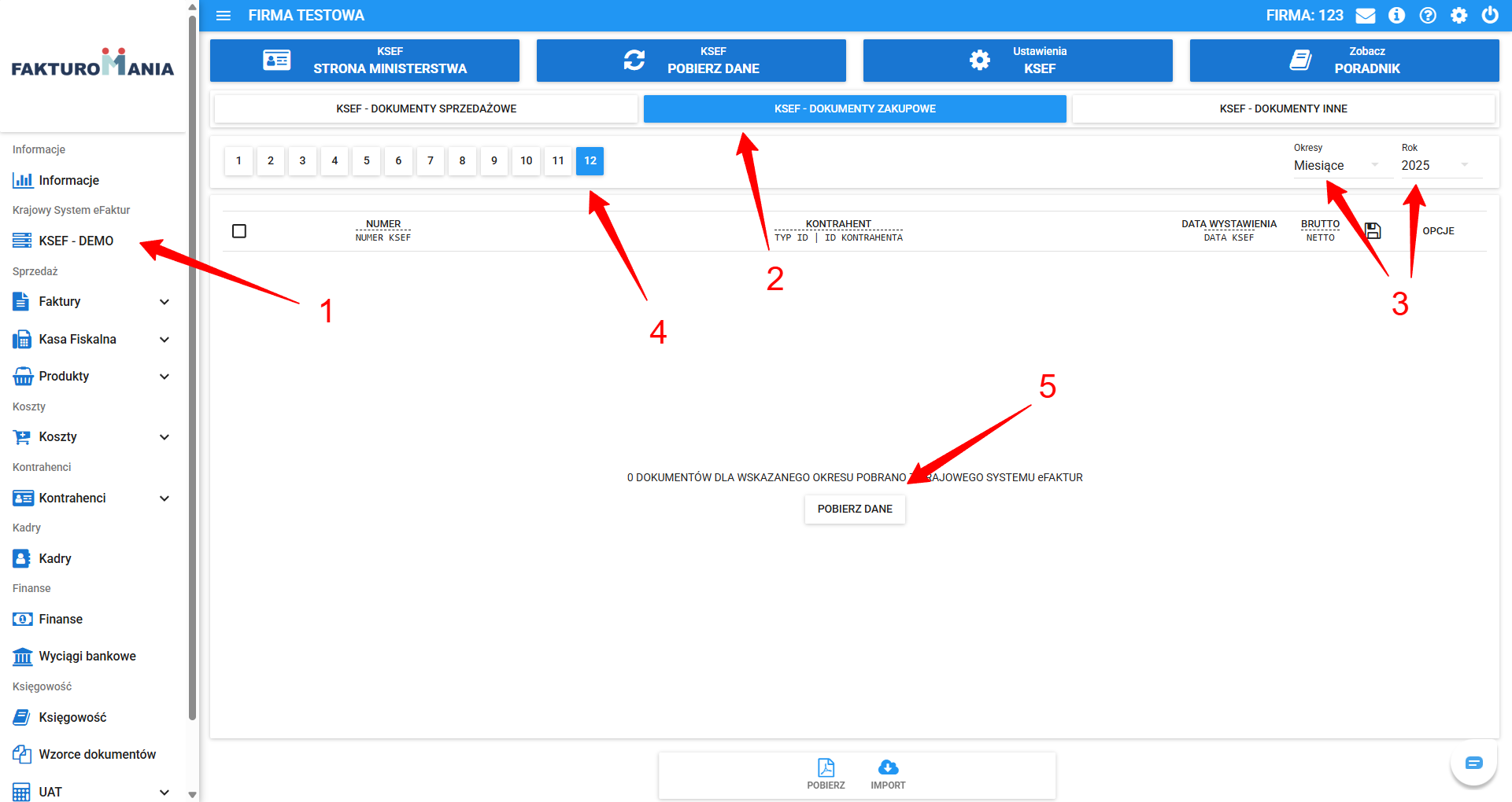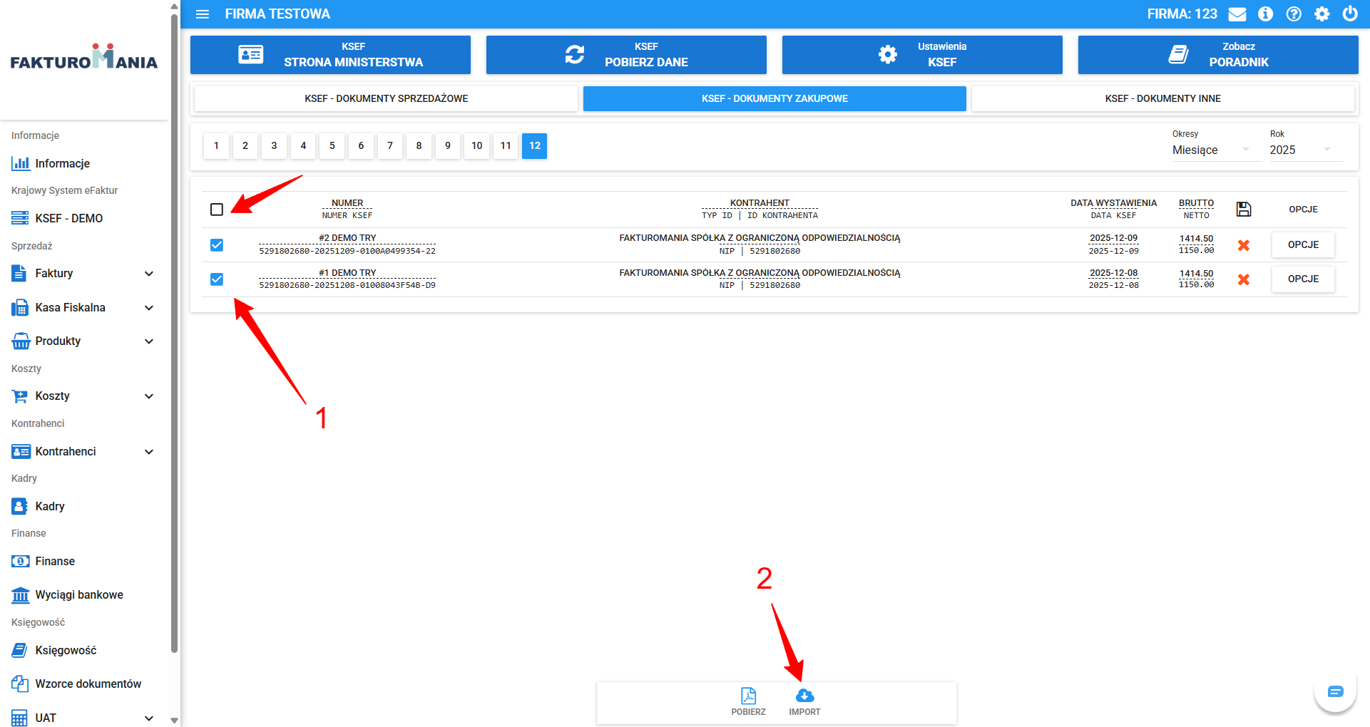 2) Import faktur kosztowych z KSeF do Fakturomanii